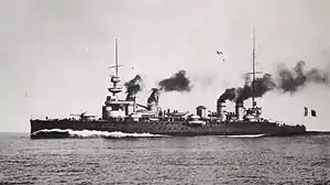 When Imperial Germany declared war on France on 3 August 1914, the ship was still assigned to the 2nd DL. The following day the cruisers were part of the escorting force for a troop convoy from Algiers, French Algeria to Metropolitan France. On 13 August Vice Admiral Augustin Boué de Lapeyrère, commander of the Allied forces in the Central Mediterranean, was ordered to begin offensive operations against the Austro-Hungarian fleet in the Adriatic. He decided to break the Austro-Hungarian blockade of the port of Antivari, Montenegro, and to engage any ships operating out of nearby Cattaro. He split his available forces into two groups with the armored cruisers following the Albanian coast and the battleships tracing the Italian coast before cutting across the Adriatic to rendezvous at Antivari on the morning of the 16th. The latter group sank the protected cruiser SMS Zenta that morning in the Battle of Antivari as the armored cruisers were coming up from the south.[9]