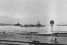 On 8 November 1941, she began a refit in Casablanca and was not fully operational when the Naval Battle of Casablanca began exactly one year later. During this unequal engagement, she was shelled by the largest ships of the opposing American forces, the US battleship Massachusetts and the 8-inch cruisers Wichita, Tuscaloosa and Augusta, as well as the 6-inch cruiser Brooklyn. She was also subject to four waves of aerial attack by Douglas Dauntless dive-bombers from the aircraft carrier USS Ranger, which claimed six direct hits.[3][4]