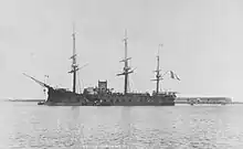 Turenne was an ironclad barbette ship of the French Navy built in the 1870s and 1890s; she was the second and final member of the Bayard class. Intended for service in the French colonial empire, she was designed as a "station ironclad", which were smaller versions of the first-rate vessels built for the main fleet. The Bayard class was a scaled down variant of Amiral Duperré. They carried their main battery of four 240 mm (9.4 in) guns in open barbettes, two forward side-by-side and the other two aft on the centerline. Turenne was laid down in 1877 and was commissioned in 1882.