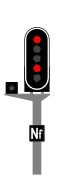 The flashing red aspect is a variant of the semaphore: a driver may pass the signal with caution at a speed which allows the train to stop at any obstruction, at a maximum speed of 15 km/h after the signal. |