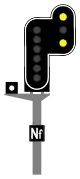 Slow 30 reminder signals are used just before one or more points to be passed at a maximum speed of 30 km/h. Slow 30 reminder can be combined with the Distant or Flashing yellow signals.