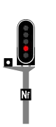 The distant signal warns the driver to be able to stop before the next signal. Distant signals are typically used with the carré, the flashing red, the semaphore, and with a signal which is accidentally not working or a buffer stop. |