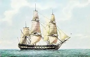 Bordelois was a 56-gun ship of the line of the French Navy, lead ship of her class. She was funded by a don des vaisseaux donation from the city of Bordeaux, and built by engineer Léon Guignace on a design by Antoine Groignard.[1] Complete too late to serve in the Seven Years' War, she was razéed into a frigate and used as an East Indiaman. She was rebuilt into a frigate to serve in the War of American Independence. Captured by HMS Romney, she was brought into British service as HMS Artois.