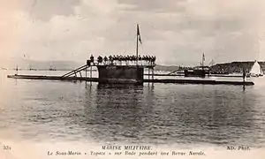![]() A French postcard of sister ship Topaze in Toulon during a naval review | |