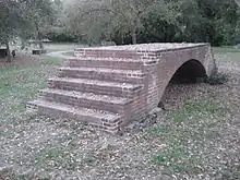 Since then trespassers have carved names or initials into almost every brick of the tower within their reach.[4] Some dates go back over 100 years.[5] In 1970, the landowner bricked in the windows to protect the structure from vandals.[5] Frenchman's Tower stands on Old Page Mill Road, midway between Foothill Expressway and Interstate 280, in Santa Clara County, California, within a strip of land within the borders of Palo Alto on land now owned by Stanford University.[6]