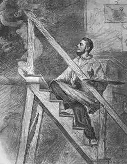 Podkowiński started to paint in Warsaw between 1893 and 1894. The creation process lasted at least three months, and according to a friend, the terminally ill Podkowiński "was painting from his bed" as he finished the work. The painting was shown at the Zachęta exhibition on 18 March 1894.[4] The exhibition was accompanied by an atmosphere of sensationalism and scandal;[4] however, approximately 12,000 people saw the picture, earning nearly 350 rubles for the gallery.[5]