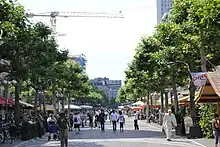 Freßgass (lit. 'Grazing Street') is an upmarket shopping street in the city centre of Frankfurt, Germany, located in the district of Innenstadt and within the central business district known as the Bankenviertel. It is commonly regarded as Frankfurt's culinary main street. The street is a broad pedestrian zone, and is located between Hochstraße and the Opernplatz (Opera Square) with the Alte Oper in the west and the Börsenstraße (Stock Exchange Street) with the Frankfurt Stock Exchange in the east. The street is also the direct continuation (in the western direction) of the Zeil, and is a parallel street of Goethestraße, Germany's best known luxury shopping street. In recent years Freßgass has increasingly become a luxury shopping street, serving as an extension of the Goethestraße in this regard. Its other primary adjacent street is the Kaiserhofstraße.