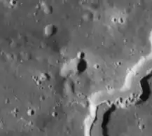 Freud is a tiny lunar impact crater that lies on a plateau within the Oceanus Procellarum, in the northwest part of the Moon's near side. It is located a few kilometers to the west of the Vallis Schröteri, a large, sinuous valley that begins to the north of the crater Herodotus, then meanders north, then northwest, and finally southwest, until it reaches the edge of the lunar mare.