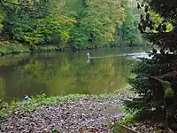 The course of the River Nith runs close to the Friars Carse mansion house and the fishing beat here consists of 2300 metres of right bank fishing with a mixture of pools providing fishing with fly, spinning or worming for salmon, sea trout and greyling.[47]