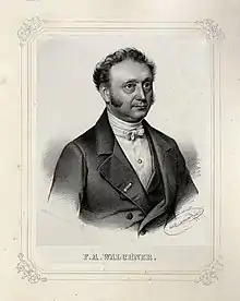 Walchner was born in Meersburg. He studied in Göttingen and at the Albert Ludwig University of Freiburg. In 1817 he joined the Corps Rhenania Freiburg.[1] In Freiburg he was member of the Burschenschaft Genossenschaft/Verein zur Bearbeitung wissenschaftlicher Gegenstände (Union cooperative / Association for processing scientific objects) and by the year 1818 he was member of the Alten Freiburger Burschenschaft (Old Freiburg fraternity).[2] In Freiburg he habilitated in 1823 and became a private lecturer and associate professor. In 1825 he was appointed to professor in mineralogy, geology and chemistry at the then newly founded Polytechnic School Karlsruhe, where he was one of the twelve lecturers at the time of founding. From 1833 to 1836 he held the post of rector there.[3]