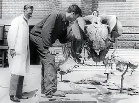 He also studied several Permo-Carboniferous and Triassic limbed vertebrates, including members of several large clades, such as Temnospondyli,[2] Synapsida,[3][4][5] and Sauropsida.[6][7] In his work on mesosaurs,[7] Huene indicated that a lower temporal fenestra was present (as in synapsids), an interpretation later rejected by many subsequent workers,[8][9] but more recently upheld.[10]