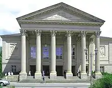 On the morning of 28 February 1933, a day after the Reichstag fire, Diez's home was raided by the Gestapo. On 6 March, immediately after the elections, the actor was dismissed from his work for being a communist.[1] During 1935, Diez - fearing an interrogation by the Gestapo - had to emigrate from Germany.[3] He and his wife traveled to Switzerland, where he worked in the St. Gallen Theater. Diez became involved in the communist and anti-fascist circles of German exiles that were formed in the country.[2] The St. Gallen Theater's manager, Theo Modes, was a supporter of the Third Reich, and Diez was "completely isolated" in his place of work.[4] In 1943 he joined the Swiss branch of the recently founded National Committee for a Free Germany.[5] By the end of the war, Diez headed the St. Gallen fraction of the Democratic Union of Germans in Switzerland, an offshoot of the Committee.[6] He also edited this movement's newspaper.[2]