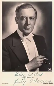 Fritz Odemar (13 January 1890 – 6 June 1955) was a German film actor.[1] He appeared in more than 150 films between 1927 and 1955. He was born in Hannover, Germany and died in Munich, West Germany. Odemar's father was the actor Fritz Odemar Sr. (Karl Julius Friedrich Odemar; 1858–1926).
