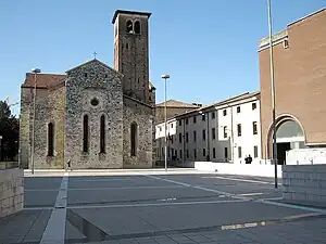 Piazza Venerio and the church of San Francesco. The shiny marble signs indicate the planimetry of Antonio Savorgnan's palace, demolished in 1549.