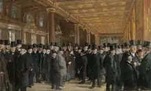 From Copenhagen Stock Exchange (Danish: Fra Kjøbenhavns Børs) is a monumental 1895 oil on canvas group portrait painting by Peder Severin Krøyer, featuring 50 representatives of the Danish commercial and financial industries gathered in the Great Hall of the Exchange Building in Copenhagen, Denmark.