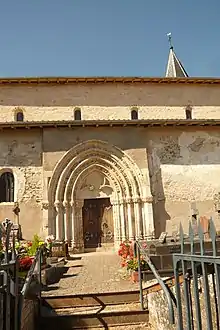 Gothic door of Romanesque priory church in Froville