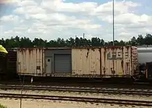 In addition to refrigerated railcar leasing and servicing, FGE also built its own freight cars. In February 1928 FGE formed the National Car Company, a railcar manufacturing unit as a subsidiary to its refrigerated food transport business. Customers included Kahns, Oscar Mayer, and Rath Packing. FGE became a major producer of railroad freight cars, mostly insulated or refrigerated boxcars, although they eventually built other railcars as well. FGE's main railcar production, in keeping with its focus, was refrigerated cars, originally ice-cooled boxcars and insulated (but not cooled) boxcars, and then mechanical refrigerated cars, or "reefers", as technology developed. FGE insulated boxcars, built with wood rather than steel for its better insulating qualities, became popular in the 1960s and 1970s. FGE insulated boxcars were used to transport items that needed protection from heat or freezing but not necessarily separate cooling such as that provided by refrigerated railcars.[5] FGE built railcars and then leased them to the group of railroads that owned FGE. Fruit Growers Express also produced and maintained its own fleet of railcars for independent leasing. In the 1970s, when trucking started to bite into the market of insulated boxcars moving produce, FGE branched into other types of railcar production, notably the production of bay window cabooses and intermodal equipment for FGE's own use and that of its parent railroads. By the mid-1980s, when safety laws were relaxed and automated technology introduced, the caboose ultimately became obsolete, eliminating this production segment for FGE.[6] With increased competition from trucks hauling produce on highways and the consolidation of the railroad industry in the 1980s spurred by the Staggers Rail Act in 1980, Fruit Growers Express, as a consortium, found that its markets shrank. With the mergers that formed Norfolk Southern in 1982 and CSX in 1986 and both companies subsequent acquisitions, a duopoly of major railroads with vast resources and routes was effectively created on the east coast and midwest, eroding further need for FGE as an independent entity. The company is now a paper entity controlled by the CSX Corporation, the successor railroad to the majority of Fruit Growers Express final ownership.[7][8]