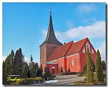 Fuglse Church is a parish church located some 13 km (8.1 mi) south of Maribo on the Danish island of Lolland. The original Romanesque church was almost totally rebuilt in the Renaissance style in the late 16th century. Standing prominently on a hilltop, the red-plastered building has a tall spire roofed in shingles.[1][2]