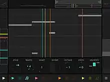 There are seven parameters that control the performance of the playheads: "style," which determines the direction of the playhead including forward, reverse, forward-reverse, and reverse-forward, tempo, which determines how fast or slow the playhead moves in relation to the "master tempo," "start," which determines when a playhead begins moving, "invert switch," which inverts the pitches of the notes from the melody, "octave," which changes the pitch of the entire melody by whole octaves, "pitch," which changes the pitch of the melody by single notes, and "velocity," how loud the playhead performs the notes.[3] Fugue Machine allows for the easy creation of polyrhythmic music by having the "tempo" parameters be in multiplied or divided numbers, such as a playhead being performed eight times slower than the "master tempo" when set at ÷8.[3] The app also has a "shift slider" that moves the pitches of all the playheads up and down.[3] Up to 128 pieces can be saved in Fugue Machine.[5]