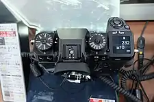 The X-H1 is equipped with the sloped viewfinder 'prism', a top-panel LCD, and a significantly larger grip and buttons than the X-T series.[6]