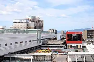 - ↑ Kinoshita, Kenji (26 August 2022). "北陸新幹線 福井駅・小松駅、駅舎の建築工事完了 – 鉄道・運輸機構" [Hokuriku Shinkansen Fukui Station, Komatsu Station, station building construction completed – Railway and Transport Organization]. MyNavi Corporation (in Japanese). Archived from the original on 26 August 2022. Retrieved 27 August 2022.