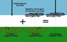 Illustration of cancellation of ground magnetic fields by Fukushima's Theorem.