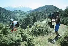 After producing three mountain-bike video titles in the late 1980s and early 1990s, including The Great Mountain Biking Video, "the world's first mountain biking video,"[7] Schulze and Mooney decided to make an "Endless Summer on Mountain Bikes"[8] and worked with four different camera operators during several phases of their journey. Mark Schulze, himself an award-winning Director of Photography, shot many of the scenic clips. Jimmy Gareri shot aerial footage in San Diego. Mark Eveslage, a National Geographic Director of Photography, videotaped in the U.S, Costa Rica, South Pacific and India locations. Dick Crow who also wore a Steadicam rig for many of his shots, videotaped in the European locations. And Ralph Chaney videotaped in Vancouver and Whistler, Canada. It took two years for the couple to acquire 75 hours of footage which was then edited down into a two-hour broadcast-quality documentary by their friend, Steve Langius.