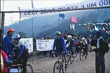... the couple join the first-ever Everest Mountain Bike Rally, which begins at 7,000 feet. Following one first with another, they become the first mountain bikers in northern Sikkim.[16]