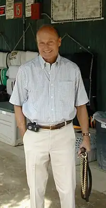 Since the middle of his three-year-old campaign, Funny Cide was beset with respiratory problems, perhaps aggravated by racing in the heat at the 2003 Breeders' Cup Classic at Santa Anita when a major forest fire raged nearby.[25] Tagg would call him "fractious", later saying, "He had a lot of good qualities about him, but he was pretty difficult to train."[31] During his five-year-old season he had back problems, undiagnosed until he had raced out of the money in the Pimlico Special, Brooklyn Handicap, and Suburban Handicap. Tagg decided to rest Funny Cide for the last half of the season.[32]