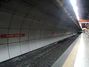 Furio Camillo is an underground station on Linea A of the Rome Metro.[1] The station was inaugurated in 1980 and is located under Via Appia Nuova, at the junction of Via Cesare Baronio and Viale Furio Camillo, in an area where roads are named after personalities from the earliest history of Rome and characters from the Aeneid.