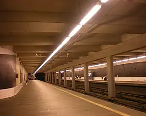 Furuset is an Oslo Metro station in the Furuset borough. It is the penultimate station on the Furuset Line, between Lindeberg and Ellingsrudåsen. The station is located under a fairly large shopping centre, and there is also a small bus terminal above the station. Architects were Økaw Arkitekter.
