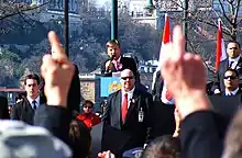 In 2006, after the Ferenc Gyurcsány's audiotape-created political crisis broke out, Demszky's actions to seek ways to limit or otherwise restrict demonstrations critical of the government were criticised by his party's opposition and as well as by civil rights groups. He ordered the posting of 100–150 signs forbidding agricultural vehicles to use Budapest's main roads and enter the city center,[6] to prevent an agricultural association staging a protest against the government and also he initiated a regulation, that mandates a permission to be obtained from the mayor's office to set up a stage for the purpose of a political event and also mandates a permission to be obtained for placing vehicles on public property for non-parking reasons. The regulation has been passed in the city council by the government majority, but it has been widely criticised for contradicting the constitution and the law which regulates public assembly (this is a so-called qualified majority law, i.e. in order to modify that law, a 2/3 majority has to be obtained in the national assembly).[7]