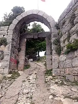 Gülek Kalesi (Armenian: Kuklak; Arabic: Kawlāk) is a large fortification of considerable antiquity which retains evidence of Byzantine and Arab periods of occupation, but is primarily a construction of the 12th and 13th centuries attached to the Armenian Kingdom of Cilicia.[2] Its circuit walls and towers at the south and west cover a distance of over 450 meters. An extensive photographic survey and plan of Gülek Castle was made between 1973 and 1979.[3] Its name in the 12th century was Askaliba.[4] In an Armenian document a certain Symbat was named as the lord of the castle. The castle was used to control the passage from Cilicia to Cappadocia and the passengers had to pay a certain sum to the lord of the castle. Later, the castle was captured by the Mamluks of Egypt and the Ottoman Empire. Ottomans obtained lead from the mines to the northwest of the castle.[4] During the revolt of Mehmet Ali Pasha in the 19th century, the castle was used by İbrahim Pasha of Egypt, Mehmet Ali's son.[5]