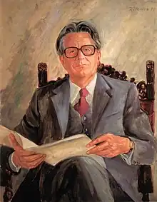 Günter Rittner (11 March 1927 – 23 November 2020) was a German painter and illustrator. He ranks among the best known German portrayers of the 20th Century. Rittner's portraits of Ludwig Erhard as well as of Kurt Georg Kiesinger are the foundation of the Gallery of Chancellors, established in 1976 by former Chancellor Helmut Schmidt in the Bundeskanzleramt in Berlin.