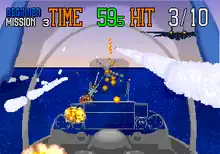 The game puts the player in a fighter plane, dog fighting other planes. Once the player takes too many hits or the game-timer runs out the game is over. The player earns more time and advances stages by achieving goals that are set in each stage. The player initially starts with limited armament which is replenished by completing missions. Players choose what targets to destroy, like ships, jet fighters, or tanks. Eventually, players will attack bosses such as War Balloon, the Bomber, and the final adversary, an enemy ace who uses the same plane as the player, except with enhanced durability and strength.