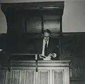 Caird returned to Oxford in 1959, where he worked as Principal of Mansfield College from 1970 to 1977 after serving as Senior Tutor under John Marsh. Because he was non-Church of England, and because Mansfield was still a permanent private hall and had not yet achieved status as a constituent college of the university (see Colleges of the University of Oxford) during this period (1969–1977), Caird was barred from holding an official university lectureship. However, as a compensation he was granted the honorary position of Reader (academic rank) in Biblical Studies, a status somewhere between Senior Lecturer and Professor. And whenever he lectured on the New Testament at Mansfield, students from all over the university came and filled the large lecture hall to capacity.[11] According to Henry Chadwick, "He lectured as he preached, almost always without a note … with nothing before him but a Greek New Testament, usually upside down, for he knew the text by heart".[12]