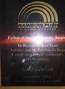 Rainbow PUSH Coalition Father of the Community Award for "service and dedication to family and community."