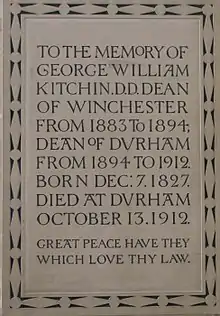 In 1883, Kitchin was appointed as Dean of Winchester and in 1894 as Dean of Durham.[2] At Oxford, his friends included John Ruskin and Lewis Carroll.[6]