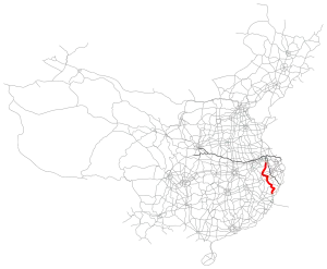 The G4012 Liyang–Ningde Expressway (Chinese: 溧阳-宁德高速公路), commonly referred to as the Lining Expressway (Chinese: 溧宁高速公路), is an expressway that connects Fu'an, Ningde and Liyang, Changzhou in China. It is a spur of G40 Shanghai–Xi'an Expressway and it travels through the provinces of Jiangsu, Zhejiang and Fujian. It is split into many discontiguous sections.[1][2][3]