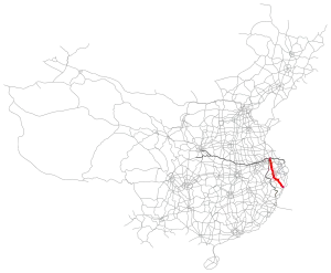 The expressway starts in Yangzhou and passes through Danyang, Jintan, Anji, Lin'an, Tonglu, Yiwu, Pan'an, Xianju, before terminating in Yueqing.[2]
