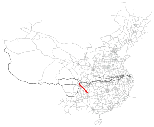 The expressway starts in Chengdu, and passes through Renshou County, Zigong, Luzhou, Chishui, Xishui County and Renhuai, before terminating in Zunyi.[3]