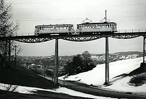Each of the four Siemens motors had an effect of 60 kW (80 hp). The trams were criticized for not having sufficient space for baby buggies. Despite running in part in city streets and on meter gauge, the trams were 2.6 m (8 ft 6 in) wide. They had seating for 40, later 36, passengers.[1]