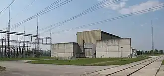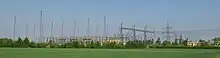 The 102-kilometre (63 mi) long powerline to Slavětice substation in Czech Republic is a double-circuit 380 kV-line. However the second circuit was installed in 2008. In the Czech Republic, two-level conductor arrangement is used, while in Austria three-level conductor arrangement is used. The line crosses the border near Kleinhaugsdorf. When built, it was the first electrical power interconnection between the synchronous grid of Continental Europe and the Interconnected Power System of the Eastern bloc.[1] In 1986 Robert Ospald succeeded the escape to Austria over the ground conductor of this line.[2]