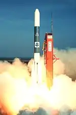 Launch occurred on May 3, 1986 at 22:18 GMT,[2] aboard Delta 178, the first NASA launch following the Challenger disaster. Seventy-one seconds into the flight, the first stage RS-27 engine shut down prematurely due to an electrical fault, and the rocket was destroyed by range safety.[3][4]