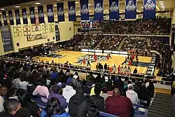 Prior to the 2013 men's and women's basketball seasons, the locker rooms were moved from the 2nd floor to the 3rd floor, taking up space previously used for large functions.[3] Renovations included the additions of a players lounge and conference hall, as well as stylized graphics lining the hallways and locker rooms.[4][5][6]