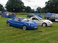 The GTM Rossa is a Mini based 2+2 kit car designed and sold by GTM Cars and styled by automotive designer Richard Oakes. The car was based on two front mini subframes attached to a central fibreglass monocoque, with the steering being locked on the rear subframe. The hard top roof was removeable and a soft top arrangement was available as an option from GTM. The Mark 1 car was produced from 1987 to 1990, and the Mark 2 car (which received restyled front and rear clamshells and can be distinguished by the use a Peugeot 205 rear light clusters) was produced beginning in 1990.