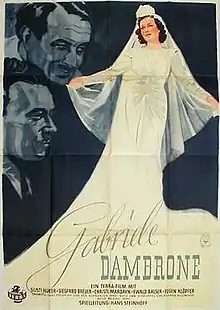 Gabriele Dambrone is a 1943 German drama film directed by Hans Steinhoff and starring Gusti Huber, Siegfried Breuer and Christl Mardayn.[1] It was shot at the Babelsberg Studios in Berlin. Location shooting took place in Vienna and Tyrol. It was an expensive production, with a budget of 1,627,000 Reichsmarks, but was a popular success at the box office.