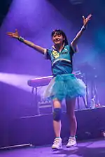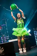 Performer Arisa left the band in July 2015 to focus on her studies entering her senior year of high school, and Mai's sixteen-year-old high school classmate and fan of the band, Nenne (Nenne Konishi),[3] was recruited in her place.[3][15][46] The following August, they performed at the J-Pop Summit in San Francisco,[3] and the album Music Battler was released in September.[47]