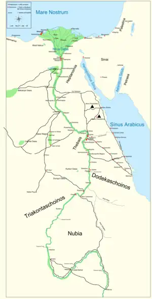 Map showing the areas of Egypt and Nubia (like Napata) where Petronius fought