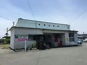 Gakunan-Enoo Station is an unmanned station with a bay platform serving two tracks. The wooden station building has no ticket machine, and is unattended.